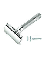 Idéal pour les novices et experts du rasage traditionnel, ce rasoir de sûreté à double tranchant est privilégié par de nombreux utilisateurs pour son look élégant et sa confection de qualité.